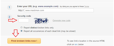 - Isi Security Code dan pilih ReportĀ all occurrences of each dead link (may be slower) lalu tekan Find broken link now !
