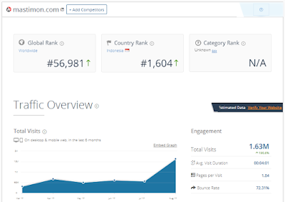 Untuk para mastah atau orang yang sudah lama bermain blog biasanya untuk mengecek statistik menggunakan Google Analytics. Tetapi menggunakan Google Analytics hanya pemilik blog yang dapat melihatny saja. Saran saya untuk melihat statistik blog orang lain anda menggunakan situs cara kedua yaitu menggunakan similarweb.com. Dengan situs tersebut anda bisa melihat statistiknya cukup lengkap. Semoga artikel ini bermanfaat untuk anda bisa melihat statistik blog orang lain untuk meningkatkan semangat menulis dan bukan untuk disalahgunakan, sekian dan terimakasih.
