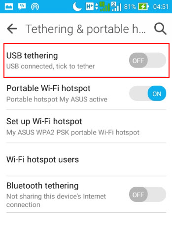2. Menjadikan Ponsel Android Anda sebagai Modem Melalui Kabel Data USB